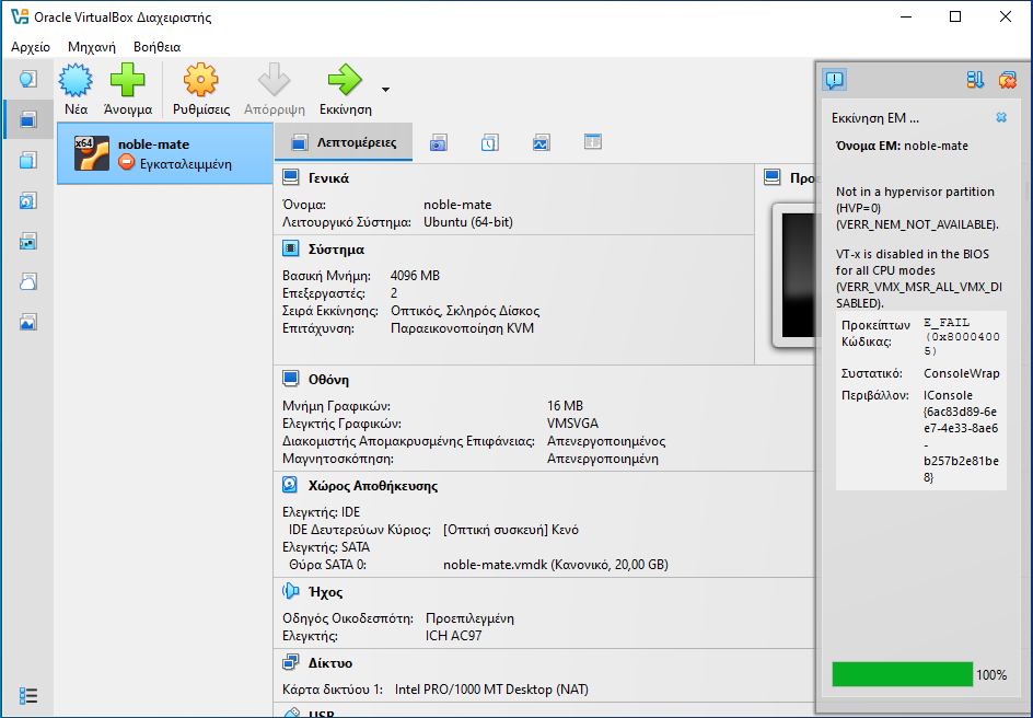 wingetδεν υπάρχει στο σύστημά σας, δοκιμάστε χειροκίνητη εγκατάσταση των απαραίτητων λογισμικών7zip,VirtualBox). -