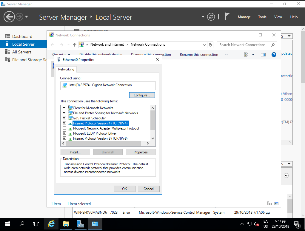 Properties στην κάρτα δικτύου Ethernet0.