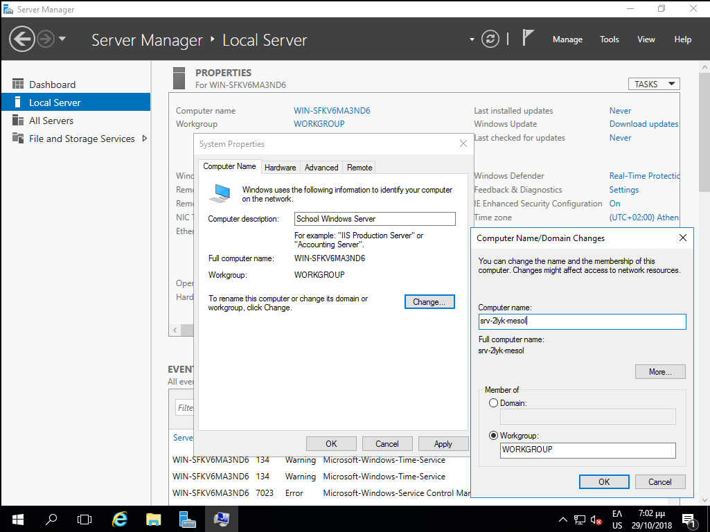 Manager επιλέγοντας Local Server ▸ Computer Name ▸